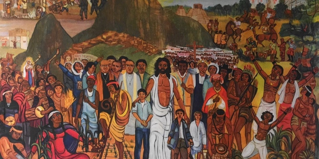 L’opera si configura come un vero e proprio manifesto della “teologia della liberazione”, unendo simboli delle culture indigene precolombiane a figure iconiche di attivisti e martiri della giustizia sociale, tra cui Chico Mendes, Oscar Romero e le Madri di Plaza de Mayo.
